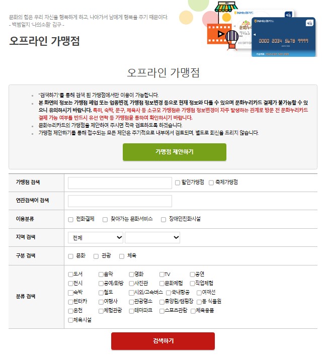 - 일부 가맹점은 문화누리카드 결제를 거부할 수 있음 → 사전 문의 필수