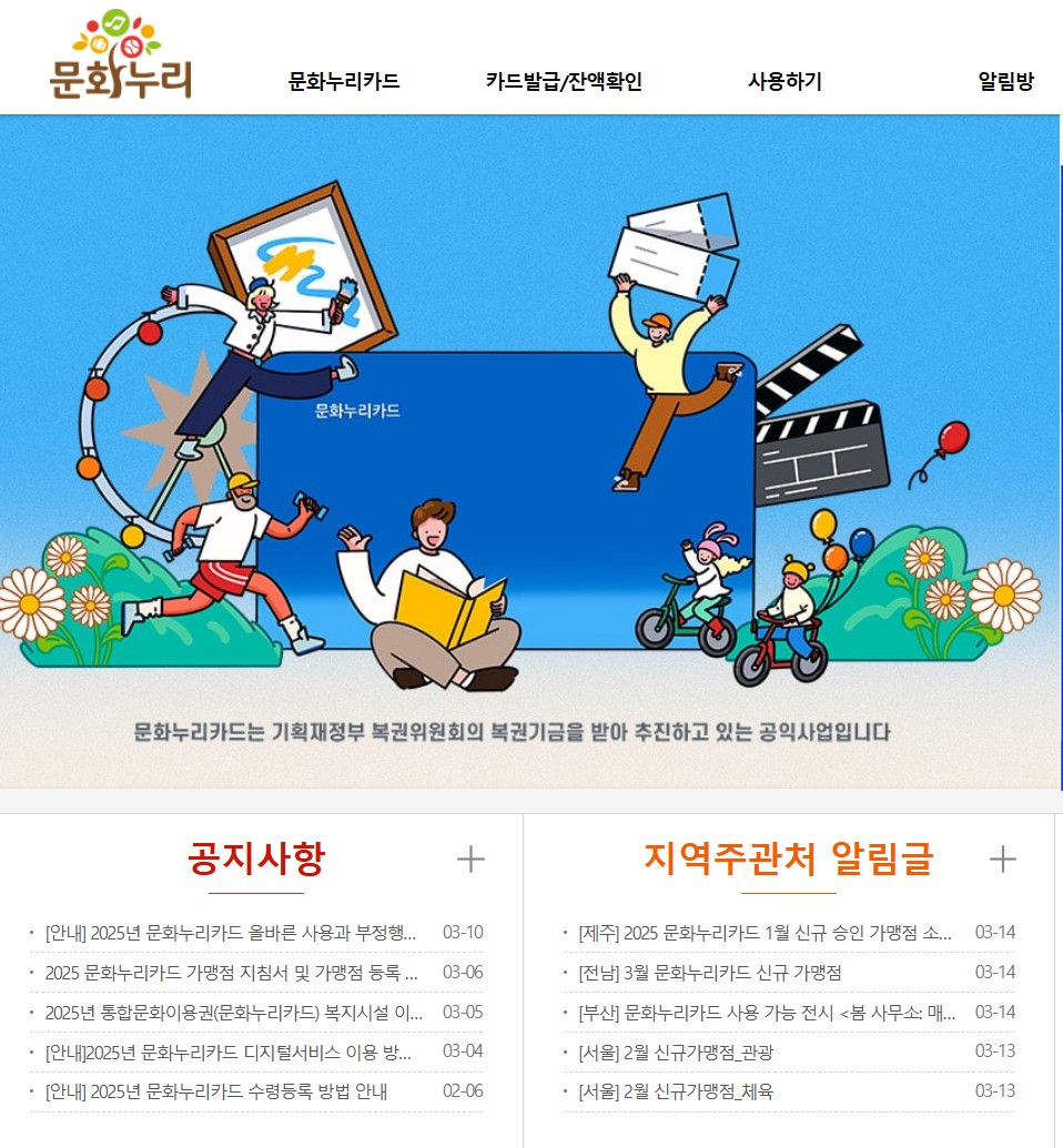 - 문화누리카드 공식 홈페이지 접속