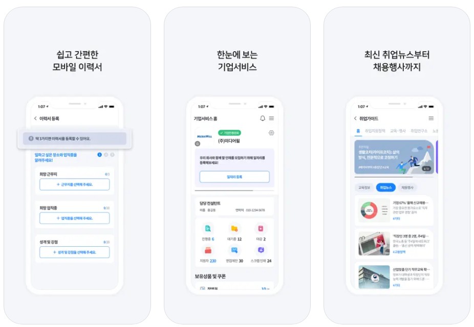 - 카테고리별, 지역별로 일자리를 쉽게 볼 수 있습니다.
