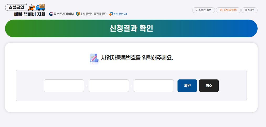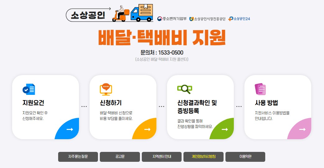 - 소상공인배달택배비지원.kr 홈페이지 접속