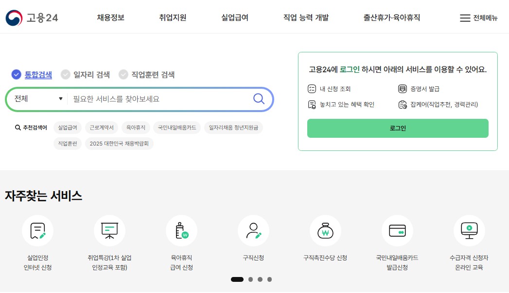 - 고용24 홈페이지에 접속