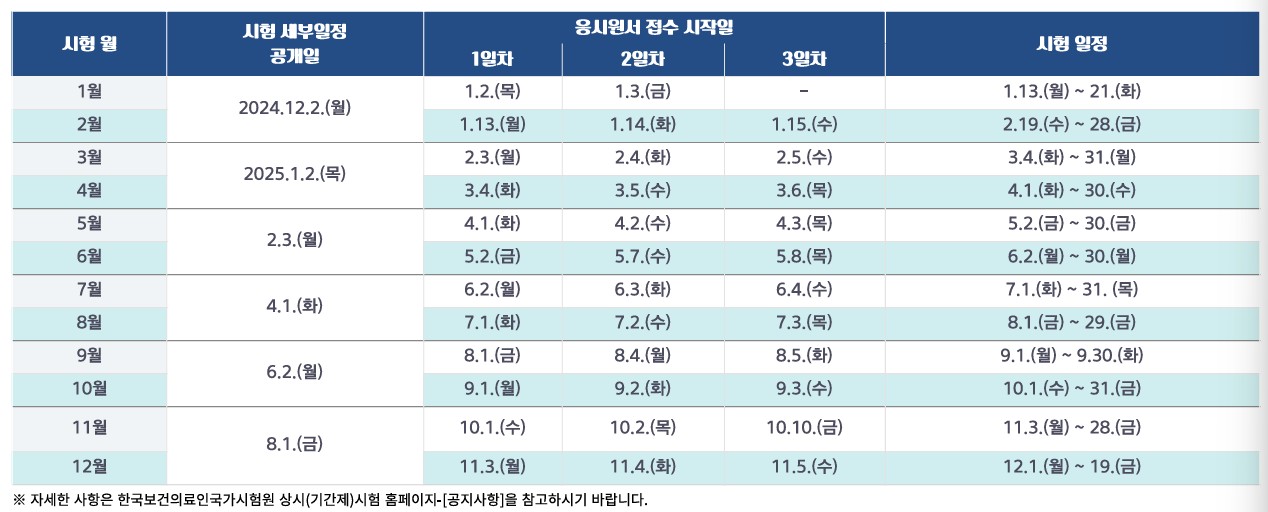 - 시험접수처: 한국보건의료인국가시험원(KHPLE)