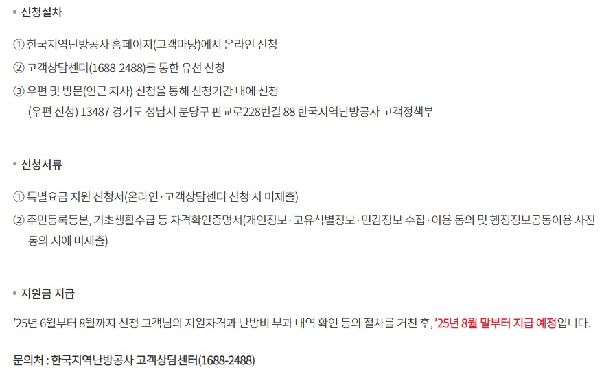 - 고객센터 메뉴 → ‘특별 난방비 지원 신청’ 버튼 선택