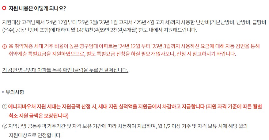 - 2024년에 난방비 지원을 받은 경우, 올해도 자동 신청 처리됨