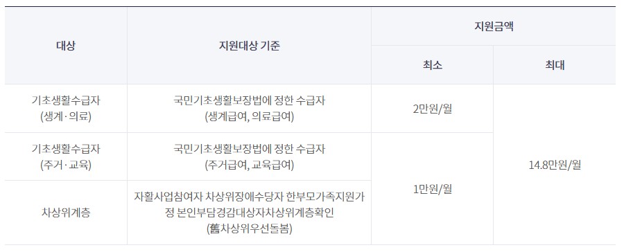 - 지원 대상: 기초생활수급자, 차상위계층, 영구임대주택 거주자