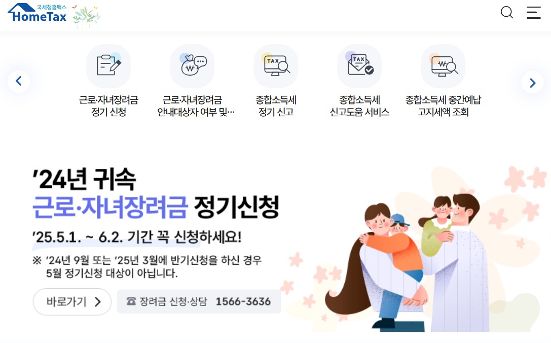 국세청 홈페이지에서 근로장려금 신청자격 확인을 5분만에 할 수 있습니다.